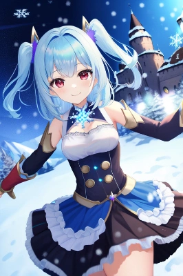 雪景色の中、紙飛行機を飛ばそうとするJK