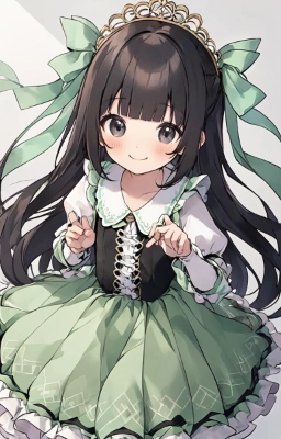 (((very longest hair))),black hair, smile,straight Hair,hair ribbon,mintgreen stripe,Black Eyes,flat chest,straight Across bangs,princess Cut, Very Long Sideburn,roundry Head,Droping eyes,cute,Meekness,Bob Cut,long back hair,12 years Old, kimono, Hood of penguin,