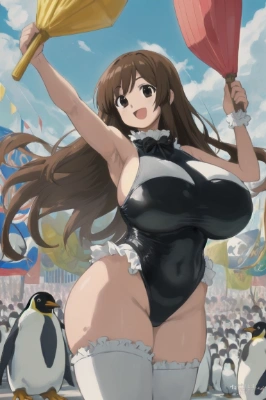 家に帰ると、色々とおっきな彼女が不敵な笑みを浮かべながら玄関でお出迎え。「この服はサプライズ?でも、ちょっとキツイかな。」と隠しておいたブルマを着用していた。という設定で。