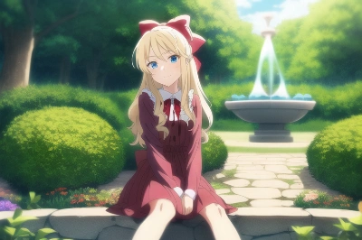 1girl,loli,blonde short hair, blue eyes, red ribbon on head,(hair bow:1.2),red bow, girl trying to make her upward-slanting eyes look droopy by pulling down the corners with her fingers, cute expression of longing, indoor setting, soft lighting, detailed expression with a touch of whimsy, hopeful gaze, delicate fingers touching face, subtle smile, casual attire, minimal background to keep focus on the girl, slight blush on cheeks, visible determination to change her eye shape, close-up view to capture the intricate action and emotion, gentle humor in her endeavor, overall tone of innocence and self-exploration