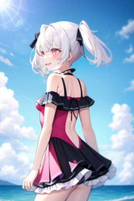 1girl, solo, breasts, looking at viewer, blush, smile, open mouth, bangs, brown hair, shirt, brown eyes, medium breasts, standing, white shirt, short sleeves, :d, sidelocks, thighs, cowboy shot, outdoors, sky, day, cloud, hand up, hair bun, blue sky, double bun, thigh gap, single hair bun, gym uniform, buruma, hand on own thigh, gym shirt, red buruma, stadium