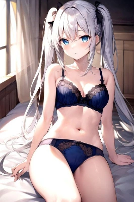 1girl, solo, long hair, looking at viewer, blush, bangs, skirt, long sleeves, hair between eyes, sitting, school uniform, pink hair, thighs, pleated skirt, parted lips, barefoot, indoors, miniskirt, pink eyes, sweater, two side up, plaid, bare legs, window, bed sheet, on bed, plaid skirt, crossed arms, knees up, pink skirt, black sweater