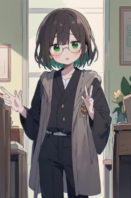 masterpiece, best quality, extremely detailed, anime, boy, pants,The hair is dark brown short hair, the eyes are blue, the color is wearing Harry Potter round glasses, the black and the back of the hood is wearing a red Gryffindor robe, I have a chicken cane in my hand, the background is Hogwarts<lora:flat2:0.2> <lora:hairdetailer:0.65> ,