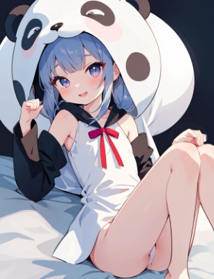 (panda mothief hood, Kung-Fu fighter, kick, white tops:1.2), bare shoulder, in bamboo forest, (cute tone, eritic mood, sexual excitement), bottomless, bare legs, barefoot, long hair, (Chinese dress, action, knee up:0.7), dynamic,