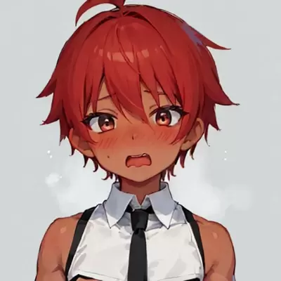 masterpiece, best quality, ultra detailed, water pencil, white simple background, 1boy, face only, close up, red hair, (brown skin:1.3), closed eyes, wavy mouth, press hands in prayer, spoken Sweat