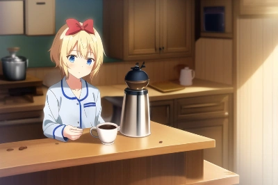 girl in holographic library viewing future and past worlds, blonde hair, blue eyes, short haircut, red ribbon,(hair bow:1.4),red bow, exploring various worlds, Japanese anime style, youthful appearance, futuristic clothing, surrounded by holographic displays, interactive holograms, dynamic exploration, vivid representations of different times, fascinated expression, immersive technology, advanced library setting, glowing interfaces, touch interaction, floating holographic books, time travel concept, diverse historical and futuristic scenes, detailed visualizations, seamless transition between worlds, innovative learning environment, intrigued and curious mood, high-tech environment, gleaming lights, soft ambient lighting, varied holographic textures, conceptual design elements, interactive learning experience, animated facial expressions, vibrant colors, careful shading, anime-like proportions, character in awe, engaging scenario, detailed expressions, silent wonder at technology, illustrative style inspired by Japanese anime, attention to detail in hair and eyes, blending ancient and future themes, emphasis on exploration and discovery, detailed depiction of holographic elements, soft and luminous color palette, environmental storytelling, capturing a moment of futuristic learning, artistic interpretation of a holographic library, creative portrayal of historical and future exploration, seamless blend of character and high-tech environment, thoughtful composition focusing on mood and theme, strategic use of holograms for visual interest, imaginative representation of learning across time, emphasis on the marvels of holographic technology.