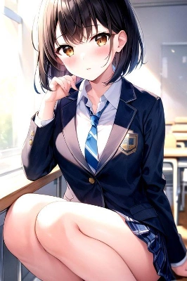 1girl, solo, long hair, breasts, looking at viewer, blush, blue eyes, skirt, shirt, ribbon, twintails, sitting, closed mouth, underwear, school uniform, hair ribbon, white shirt, white hair, short sleeves, thighs, pleated skirt, serafuku, indoors, miniskirt, sailor collar, blue skirt, neckerchief, pillow, window, on bed, blue sailor collar, red neckerchief