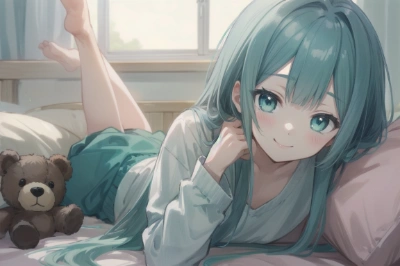 wink, masterpiece, best quality, highres, 1otoko no ko, solo, yellow cardigan, (brown pleated skirt), (lose socks:1.3), loafers, school bag, かわいい, flat chest, aqua hair, aqua eyes, half updo, smile, shibuya, one eye closed<lora:flat2:0> <lora:hairdetailer:0.5>,