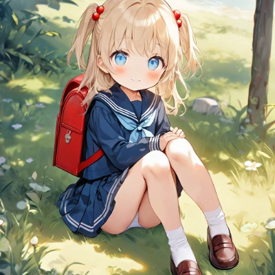 1人のとても小柄な女性。とても長い金髪、とても長いストレートヘア。レースとフリルの多いピンク色のフェアリーテイルのプリンセスドレスを着ている。宝石のついたネックレスとブレスレットとティアラをつけている。青い目。ピンク色の靴。顔を赤くして優しく微笑んでいる。花畑に立っている。ドレスを摘んで挨拶している。風が吹いている。全身。アニメ風
