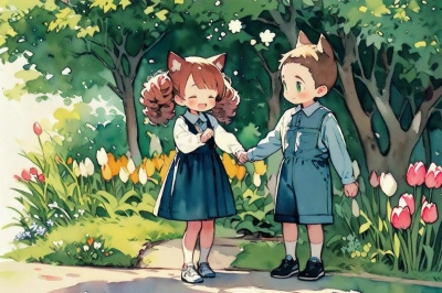 Masterpiece, Top quality, Super fine, (Sepia: 0.5), Retro, Antique, Nostalgia, View from below, Looking down, Solo, Beautiful woman, Blonde (long hair, straight hair, blunt bangs, bangs above the eyebrows))), blue eyes (sanpaku eyes), sitting on the sofa, resting elbow on knee, hand on cheek, smile (mouth closed), blazer, pleated skirt , Mary Jane shoes, background (red, white, blue)