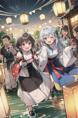 masterpiece,Blonde Hair,soba,(((Masterpiece, High Quality, 8k, Best Quality, fine lines,high resolution, close up center girl,line anime))),Detailed background with fine lines,vibrant colors, A young girl sipping Japanese soba noodles, slurping noodles, holding chopsticks, biting noodles, Japanese casual dining scene, tray with dishes, restaurant counter, paying at register, ordering hamburgers, working to earn money, crowd of customers, bustling atmosphere, busy servers, stools at counter, steam rising from bowls, traditional decor, hanging lanterns, noren curtains, Japanese signs, cashier behind counter, stacking dishes, carrying trays, clearing tables, wiping counters, refilling drinks,<lora:flat2:-0.5> <lora:hairdetailer:0.6> ,