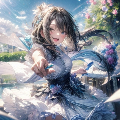 masterpiece, best quality, extremely detailed, <lora:flat2:-1> <lora:hairdetailer:0.7> ,nine-tailed fox, fearless smile,Blonde Hair,kimono,explosive flame,