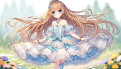 1girl little female child loli toddler preschooler two side up very long blonde hair navy blue serafuku sailor long dress navy blue sailor collar navy blue pleated dress blue eyes ((blush)) embarrassed long sleeves hair red bobbles red backpack standing on grass white panties socks looking at viewer white panties close-up slender thin legs outdoors floral garden ((((from below))) masterpiece best quality,