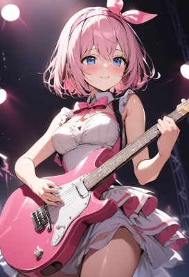 masterpiece, best quality, absurdres, absolutely resolution, ultra detailed, 64K, super fine illustration, highly detailed beautiful face and eyes, perfect anatomy, professional lighting,BREAK(1girl, cute girl, shiny body, shiny skin, middle breasts), (pink hair, short bob hair, hairband, blue eyes), light smile,BREAK(wearing blue long dress), (standing in rose garden, various color roses), rose petals, cowboy shot,,,