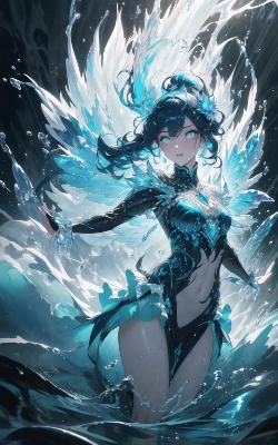 masterpiece,best quality,(4k,raw photo,hyper realistic character,ultra-detailed,realistic:1.2),complicated,(perfect anatomy),extremely detailed,1girl,aqua,spirit,absurdly long hair,water splash,prism colored crystal wings,crystalline dress,hair ornaments,Water floating,Stream of water,Spiral water,Water behind,whirlwind of water,CrystallineAI,vibrant colors,light rays,shiny blue,contrast,(horror-toned,dark tones),dynamic angle,dynamic pose,motion,sharpfocus,glowing eyes,stunning detail
