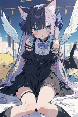 masterpiece, best quality, extremely detailed, anime, girl, miniskirt, Heaven, girl, longhair, maid uniform, short sleeve, garter belt, pink hair, maid, fantasy, colorful, cat, different world, panty shot, healing, lying down, happy, sleeping, laughing,bigbust,