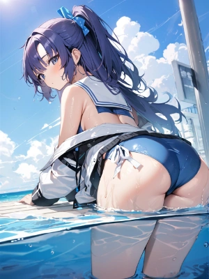 水着ユウカのお尻バックショット【ブルアカ・ユウカ】