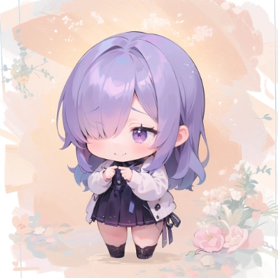 masterpiece, best quality, extremely detailed, absurdres, (a girl:1.2), solo, side_ponytail, kimono, smiling, look back, full body, cinematic composition, waving, (deformed:1.2), (chibi character:1.2), light pink background, sakura_blossoms, Japanese style