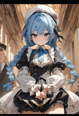 masterpiece, best quality, extremely detailed, anime <lora:flat2:0> <lora:hairdetailer:1> girl, superlonghair, puff sleeve, silver hair in pink hair, pink eyes, watercolor,RAINBOWcolorBubble,openchest,offshoulder,glamorousbust,accessory,Heart,,candy,candyWorld,love,, Downcast Eyes, Beret,,