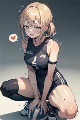 unity 8k wallpaper, anatomically correct, (((masterpiece))), (((best quality))), (((ultra detailed))), (((high-resolution))), ((Ultimate cutie)), perfect hands, perfect finger, (((good anatomy))), detailed beautiful face, shiny hair, (((gyaru))), potbelly, (curvy), (Thick thighs), (((solo))), ((seductive smile)), (((blush))), (half open mouth), Eyes are heart marks, (heart shaped pupils), ((trembling)) BREAK, 1girl ball black_socks blush brown_background collarbone elbow_pads gradient_background knee_pads looking_at_viewer BREAK ((buruma)) gym_uniform ((sitting_on_ball)) socks solo spread_legs squatting thighs volleyball_(object) yellow_and_black_6-inch_volleyball volleyball_sneakers spoken_hart ((sweat)) (covered_in_perspiration),, <lora:hairdetailer:0> <lora:sensualface_type2:1> ,,,,,,,
