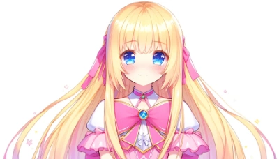 1girl little female child loli toddler preschooler two side up very long blonde hair magical girl white dress pink dress gold embroidery star Accessory holding magical staff blush smile closed mouth slender thin legs [blue eyes] masterpiece best quality