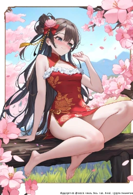 very aesthetic, best quality, absurdres, A young girl is wearing a playful V-neck set. The white fabric has a pink polka dot pattern, giving it a cute look. Her outfit has rose petal accents on her upper body and skirt. The updo hairstyle adds elegance to her long, charming wavy hair. Her soft curls are tied back with a pink ribbon, and her expressive eyes sparkle with joy. She stands in a bright blue sky decorated with white clouds. She looks sweet and adorable. Behind her is a girl lying on a bed in a canopy, with a black rose with many black petals dancing in the air. with blush cheeks, official art, {{ultra-detailed}}, {{high resolution}}, dynamic fuzziness, colorful, best quality, cowboy shot, underwear, girl ,solo, 20 years old, beautiful detailed hair, beautiful detailed eyes, blunt bangs, braid hair, twintail, side ponytail, bob, Shostakovich, hypermaximalist, super detailed, {{{{amazing quality, great quality, high quality, very aesthetic, aesthetic, best quality}}}}