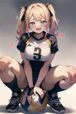 unity 8k wallpaper, anatomically correct, (((masterpiece))), (((best quality))), (((ultra detailed))), (((high-resolution))), ((Ultimate cutie)), perfect hands, perfect finger, (((good anatomy))), detailed beautiful face, shiny hair, (((gyaru))), potbelly, (curvy), (Thick thighs), (((solo))), ((seductive smile)), (((blush))), (half open mouth), Eyes are heart marks, (heart shaped pupils), ((trembling)) BREAK, 1girl ball black_socks blush brown_background elbow_pads gradient_background knee_pads looking_at_viewer BREAK ((buruma)) gym_uniform ((sitting_on_ball)) socks solo spread_legs squatting thighs volleyball_(object) yellow_and_black_6-inch_volleyball volleyball_sneakers spoken_hart ((sweat)) (covered_in_perspiration) <lora:hairdetailer:0> <lora:sensualface_type2:1> ,,,,,,,