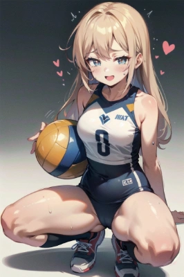 unity 8k wallpaper, anatomically correct, (((masterpiece))), (((best quality))), (((ultra detailed))), (((high-resolution))), ((Ultimate cutie)), perfect hands, perfect finger, (((good anatomy))), detailed beautiful face, shiny hair, (((gyaru))), potbelly, (curvy), (Thick thighs), (((solo))), ((seductive smile)), (((blush))), (half open mouth), Eyes are heart marks, (heart shaped pupils), ((trembling)) BREAK, 1girl ball black_socks blush brown_background elbow_pads gradient_background knee_pads looking_at_viewer BREAK ((buruma)) gym_uniform ((sitting_on_ball)) socks solo spread_legs squatting thighs volleyball_(object) yellow_and_black_6-inch_volleyball volleyball_sneakers spoken_hart ((sweat)) (covered_in_perspiration) <lora:hairdetailer:0> <lora:sensualface_type2:1> ,,,,,,,