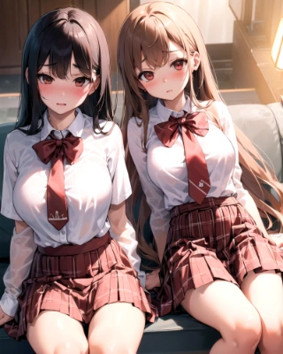 (extremely detailed:1.5), (1 pure innocent girls), very cute face, young face, like idols, (blush:1.3), big breasts, (white school uniform), (brown gingham skirt),(red ribbon tie),(frightened), (hotel),sit on sofa,black hair,long hair,straight hair, perfect face, detailed face, (hyper realistic:1.2), 8k cg wallpaper, (cowboy shot)