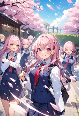 Cherry blossom blizzard, women, students, uniforms, anxiety, expectations,
