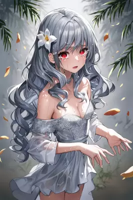 ((masterpiece)),(((best quality))),((ultra-detailed)),((illustration)),(extremely detailed 8k wallpaper),(illustration),chromatic aberration,dynamic angle,highly detailed,(caustic),depth of field,classic,+++(only 1girl:1.5),(a 17yo girl) sitting//,full body,(detailed face:1.2),(blue eyes|green eyes),detailed eyes, (tears),(crying)++,+++((blue:grey)) hair, long curly hair, disheveled hair, (sidelock),(hair ornament)///,++small breasts,cleavage,(((white:black) dress),(off-shoulder),( ),slender waist///,+++( )+++,(( )),(correct hands and fingers:1.3),(proper-anatomy),ai is sb,(slim legs)///