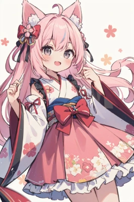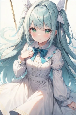 masterpiece, best quality, extremely detailed, anime, solo girl, white long rabbit ears, white drooping rabbit ears, pink longhair, pink eyes, one eye closed, sailor collar, simple white dress, short sleeves, wristband, smile, small breast, pointing forward, open mouth, fantastic atmosphere, sky, pointing at viewer, posed photo, wave,