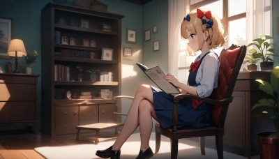 masterpiece, best quality, very aesthetic, absurdres,living_room, large_windows, spring_sunlight, streaming_light, cherry_blossom_trees, in_full_bloom, visible_through_windows, falling_petals, cherry_blossom_shower, window_view, curtains, sofa, coffee_table, potted_plants, wooden_floor, rug, (warm_atmosphere:1.3), (lens_flare:1.2), wide_shot, eye_level_view
