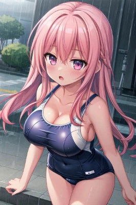 masterpiece, high quality, extremely detailed game CG, anime style3, girl,rainy,in the summer,T-shirt ,long pink hair,8K,award winning level,close-up,large beautiful breast,high res,amazing image quality,dynamic angle,,,,,glamour,,,,,,from front,,,,,,,,,,,,,,,