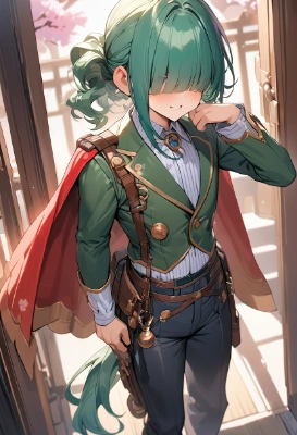 deltamon_beta , ((masterpiece, best quality, extremely detailed, absurdres)), steam-punk-style laboratory. room (in glass jar:1.4) (chibi:1.4) 1girl,deltamon_beta, solo, blue eyes, simple background, thighhighs, long sleeves, white background, dress, animal ears, shoulders, blue tail, earrings,pink boots, detached sleeves, green hair, sleeveless, cat ears, bag, white dress, white thighhighs, cat tail,pink backpack,yellow delta tie,pink randseru angry <lora:deltamon_v1:1>,