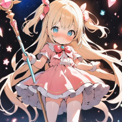 1girl little female child loli toddler preschooler two side up very long blonde hair red ribbon white blouse red skirt lace embroidery frills long sleeves blue eyes blush smile closed mouth outdoors fantasy witch witch's hat and cape holding magical staff white panties white socks brown boots dynamic pose wind masterpiece best quality