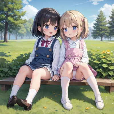 masterpiece,best quality,extremely detailed,7girls,loli,cute,(child:1.2),white blouse,pinafore_dress,cute panty,high socks,cute shoes,cute smile,cute dancing pose,in the park,cowboy_shot,panty_peek,crotch_focus,
