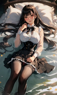 post-Impressionist,black hair,white pantyhose,leather skirt,
