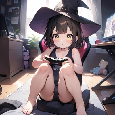 perfect anatomy, absurdres, a prime lens, single focus lens, thicket, (looking up:1.2), (face down:1.3), from above, wear a witch hat too deep,