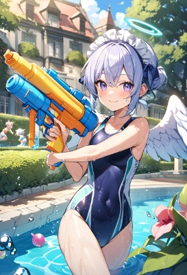 久々に競泳水着を見たかったので 前回はホースだったので今回は水鉄砲にしました
