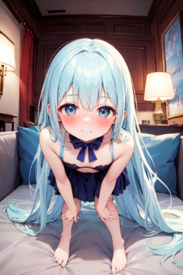 masterpiece, best quality, extremely detailed, (illustration, official art:1.1), 1 girl ,(((( light blue long hair)))), light blue hair, ,12 years old, long hair ((blush)) , cute face, big eyes, masterpiece, best quality,(((((a very delicate and beautiful girl))))),Amazing,beautiful detailed eyes,blunt bangs((((little delicate girl)))),tareme(true beautiful:1.2), sense of depth,,, affectionate smile, (true beautiful:1.2),,(tiny 1girl model:1.2),)(flat chest)),,absurdres, High Detail, Ultra Detail, 8K, Ultra High Resolution A cute and innocent girl, small breasts, highest quality、All limbs、full finger、1 girl、((one beautiful woman、solo))、straight hair,big smile、naughty pose、barefoot、sexy pose、hands on hips、Living room at home、sofa、upward glance <lora:hadanuri2:1> <lora:sensualface_type2:1> ,