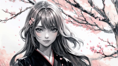 16K, ultradetailed, 1girl, (Ink painting:1.3), waterfall background, soft focus, cinematic lighting,
