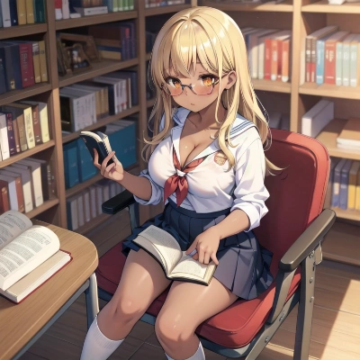 masterpiece,best quality,extremely detailed,1girl,pure,bishoujo,high school student,(library Commission:1.2),skinny,black hair,bunches,small_breasts,serafuku,half sleeves,miniskirt,cute panty,high socks,school shoes,under-rim_eyewear,smile,holding_book,standing side of school library counter,many books are stacked on the school library counter,