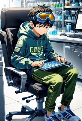 masterpiece, best quality, extremely detailed, anime, 1girl, solo, red shirt, very short hair, black hair, breast pocket, boots, full body, halo, bag, red necktie, short sleeves, forehead, pleated skirt, (((yellow skirt))), Thick eyebrows, Round eyes, grin, standing, simple background,