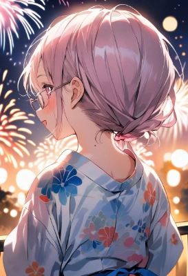 masterpiece, best quality, extremely detailed, high resolution, watercolor art of anime character , a young female children ,10yo, (glasses), magical girl costume ,pink hair and pink eyes, smile serio, make a heart shape with hands,heart figures streaming out from hands, dynamic pose