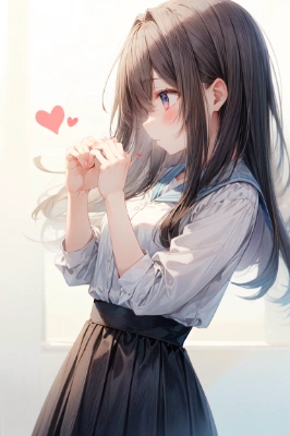 (((Masterpiece, High Quality, 8k, Best Quality, fine lines,high resolution, line anime, 1 girl))),Detailed background with fine lines,vibrant colors,heart with hands,heat with hands,春眠暁を覚えず,extremely detailed,anime,profile,cotton skirt,<lora:add-detail-xl:0.8>,<lora:add_detail:0.8>,<lora:torino-XL-v1:0.8>,<lora:ClearHand-V2:0.8>