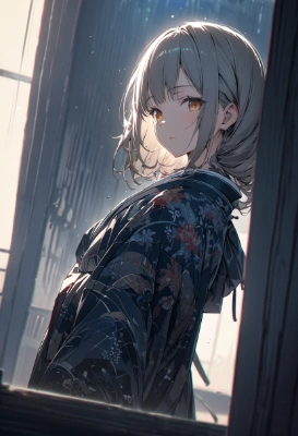 (Blooming flowers surround the girl). using traditional Japanese colors, vibrant yet muted tones, with soft ambient light in the background to make the character stand out. The character has a calm expression, standing quietly in a calm posture, natural light coming from the side, clear shadows and highlights. Please draw an anime character with a Japanese theme. (Spectacular views)., , Masterpiece, Best quality, Extremely detailed, detailed illustration. Glow-effect–v4, Light caustics effect–v4,