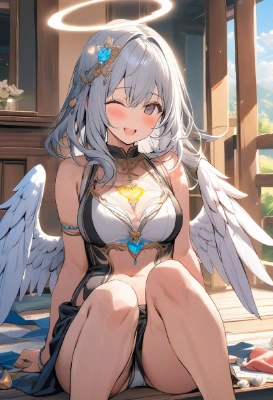 masterpiece, best quality, extremely detailed, anime ,happiness,beautiful,so cool,long pans,a pretty woman,sunny day,blue sky, <lora:flat1:1> <lora:flat2:1> <lora:hairdetailer:1><lora:darkness_v100:1> <lora:sensualface_type2:1> A goddess-like presence ,Angel wings,angel halo,Silver Hair,i love you,hearts,Sacred Radiance, blessing ,Full of energy,Beautiful Nature,break ,one head ,Two arm ,Five fingers ,One umbilicus ,Two knees ,Two legs ,break,Body paint ,,