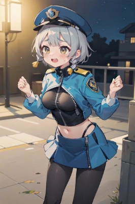 masterpiece, best quality, extremely detailed, anime, girl, skirt masterpiece, best quality, extremely detailed, anime, girl, skirt 3D art, caught in a dim cell, yellow bob hair, 1 yellow bear, small tits, yellow eyes, both hands are handcuffed on the back, prisoner clothes, legs are shackled, leaning forward and looking at the front with a crying face masterpiece, best quality, extremely detailed, anime, girl, skirt masterpiece, best quality, extremely detailed,(masterpiece, best quality), 1 woman, (partially unzipped crop top blue police suit:1.2), (big breast: 1.2), (deep slitted tight skirt:1.2), (ivory black pantyhose:1.2), (blue police cap:1.1), long brown hair, smiling, open mouth, (hands on breast:1.1), full lips, rosy cheeks, pale skin, soft facial features, (night:1.1), (gray eyes), urban city,,nNegative prompt: Mayng, nSteps: 20, Sampler: DPM++ 2M Karras, CFG scale: 7.0, Seed: 1142431729, Size: 768x1200, Model hash: 9771ad4f0e, Model: SD2Scream_v20, Seed resize from: -1x-1, Denoising strength: 0.5, Clip skip: 2, RNG: CPU, Version: v1.3.2,