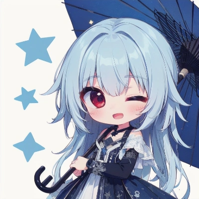 (masterpiece), (best quality),(ultra-detailed),(illustration),(extremely detailed),(perfect anatomy),(super detailed skin),(detailed),(beautiful detailed eyes),1girl,(chibi:1.3),, umbrella, longhair, blue hair, red eyes,dress,blue dress,one eye closed,star (symbol),smile,open mouth,,,